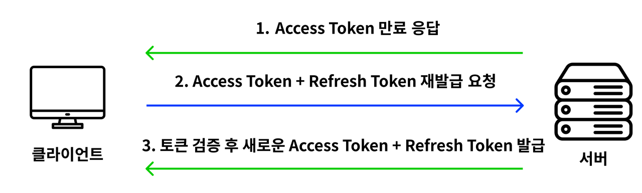 - 유효기간이 끝난 Access Token에 대해 Refresh Token을 사용하여 새로운 Access Token을 발급