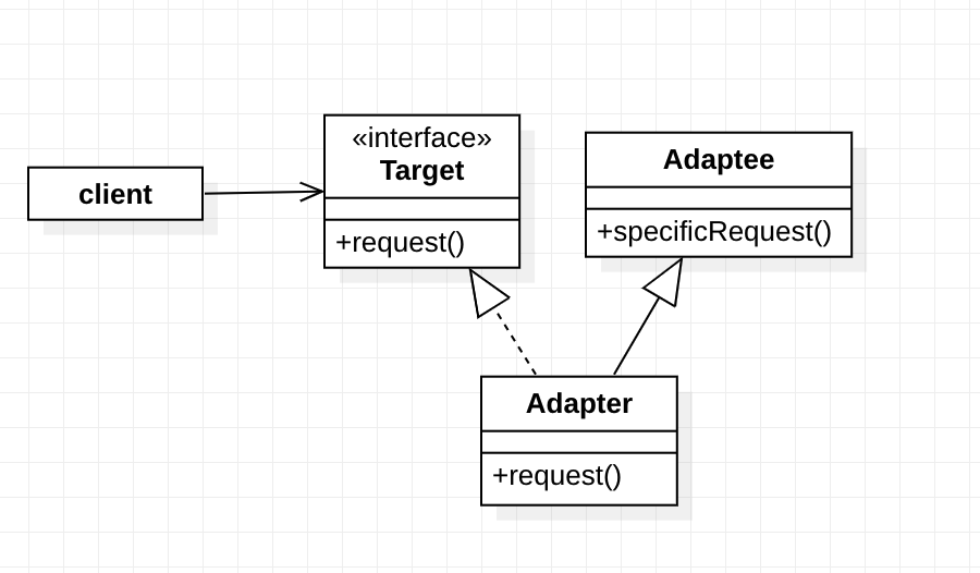 - Client: 기존 시스템을 어댑터를 통해 이용하려는 쪽. Client interface를 통해 Service를 이용