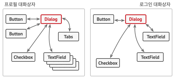 - 객체들간의 상호작용이 복잡해서 서로간의 의존관계가 구조화되어 있지 않고 이해하기 어려울 때