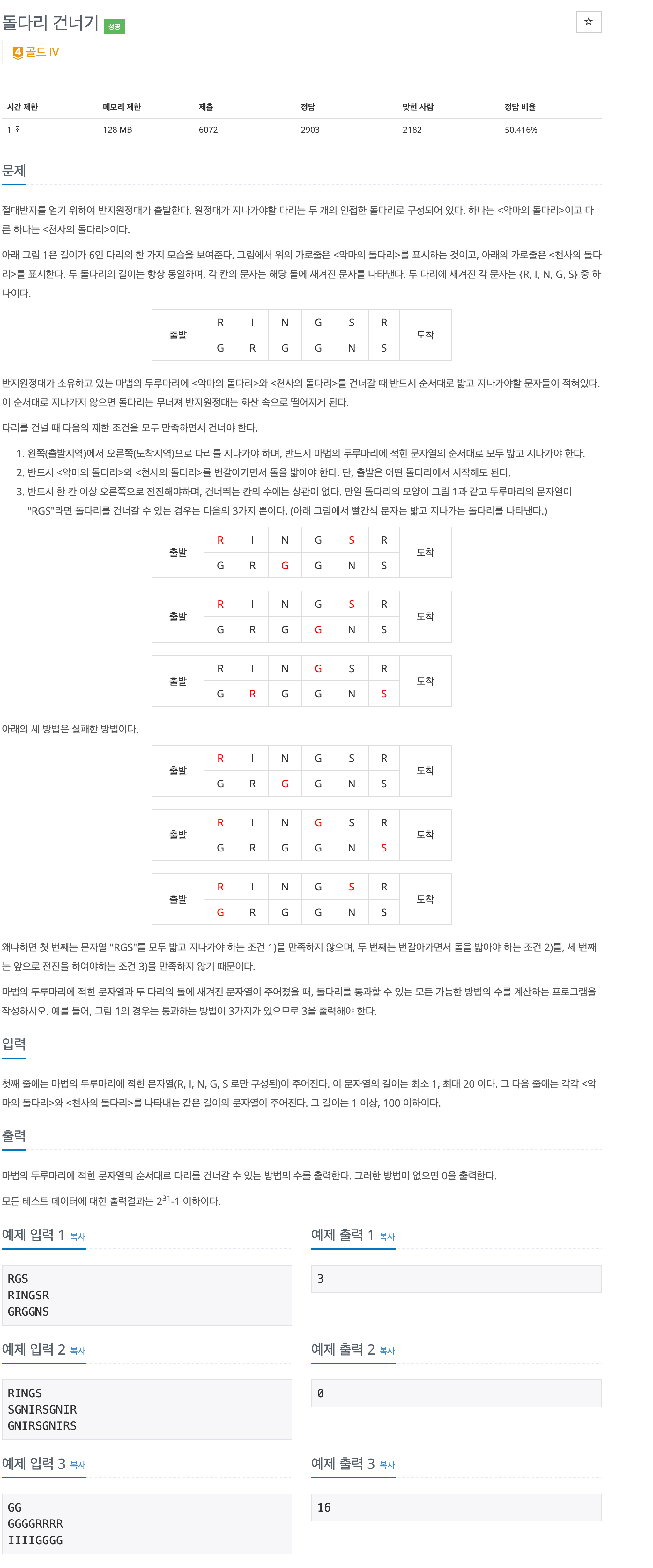 - 불일치: 만약 현재 다리의 j번째 발판이 route의 i번째 문자와 일치하지 않는다면,